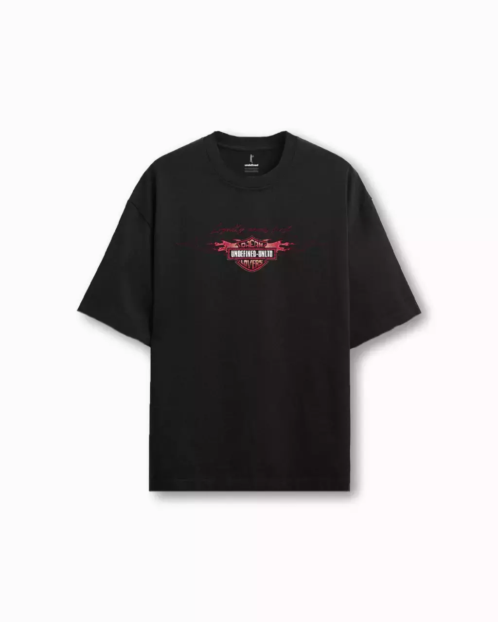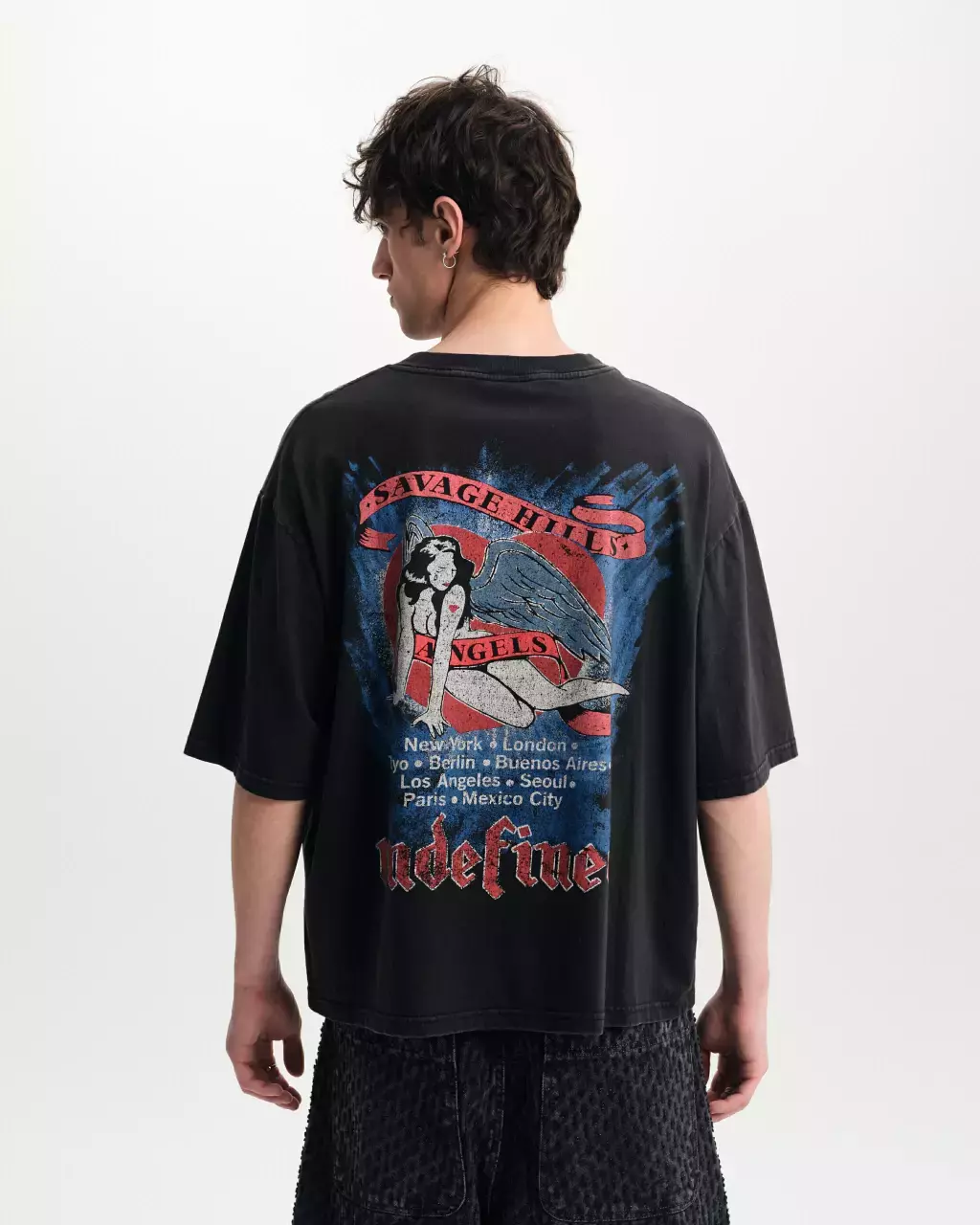 Remera Manga Corta con estampa frente y espalda, jersey 20:1 100% algodon. El modelo mide 1.85 y está usando talle M
